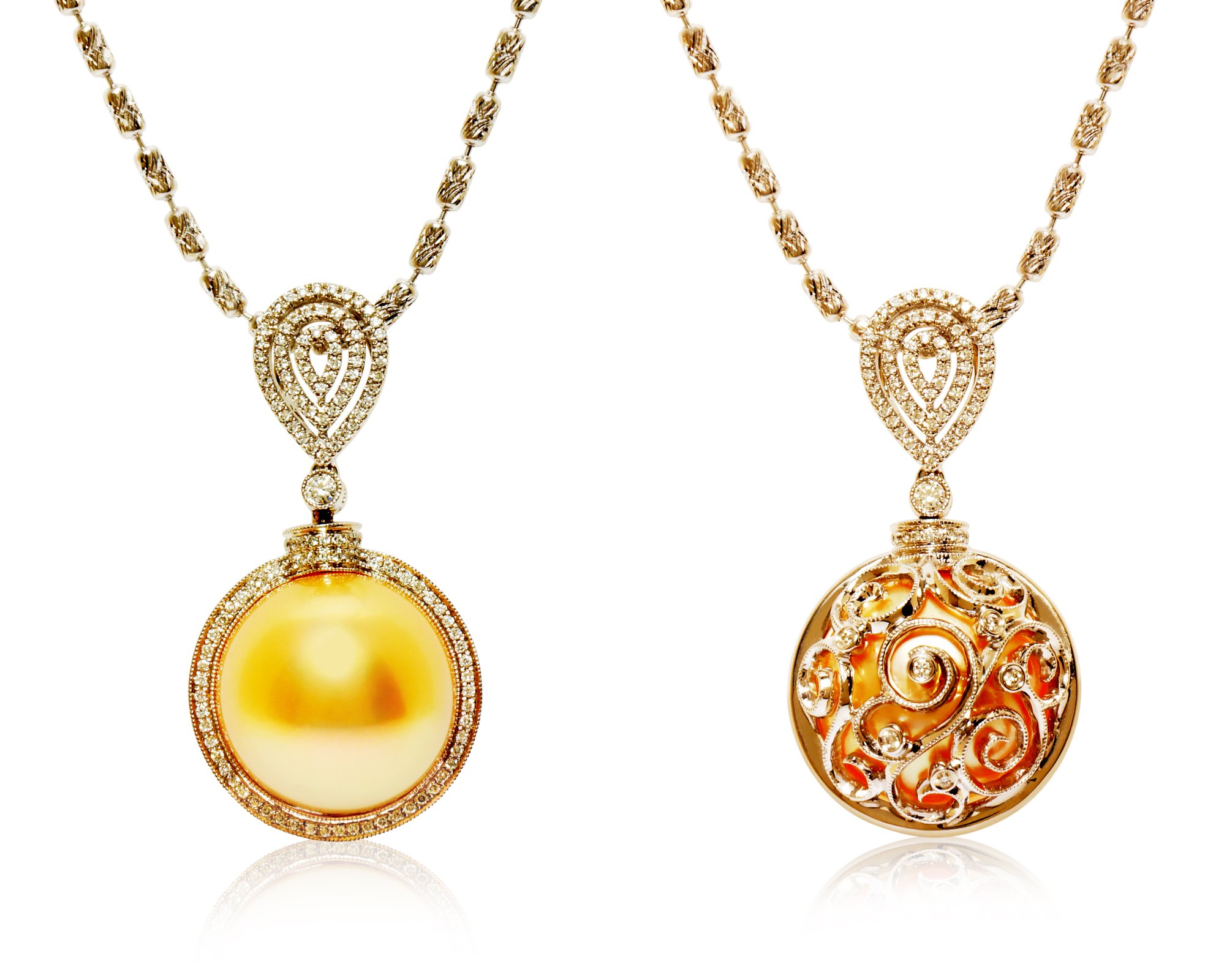 18W 16.6mm AAA Golden Pearl 0.51ctw Diamonds Hidden Beauty