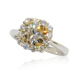 Introducing the 18TT 1.74ct Unusual Color Diamond Ring, a masterpiece of elegance and individuality. This stunning ring features a rare 1.74-carat diamond with a unique faint brown hue, accompanied by a GIA natural diamond grading report. Encircled by a halo of sparkling diamonds totaling 0.56 carats, the centerpiece radiates brilliance and sophistication.